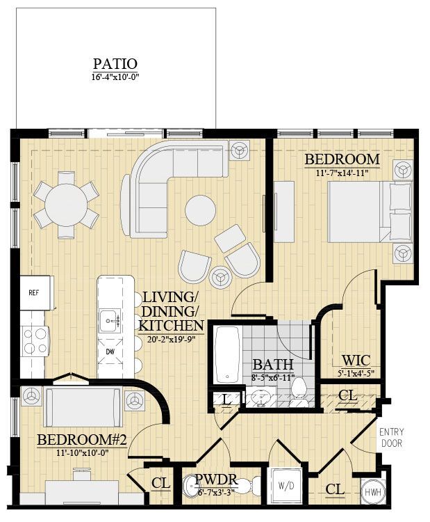 C1 - Plano 1 Unidad de apartamento: 1101Modelo de apartamento: C12 Dormitorios, 1.5 Baños, 973 sq ftDisponible AhoraPlano: D2