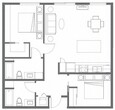 1X2C + Den - Plano 1 Unidad de apartamento: 526Modelo de apartamento: 1X2C + Den1 Dormitorio, 2 Baños, 904 sq ftDisponible February 11, 20261x1F