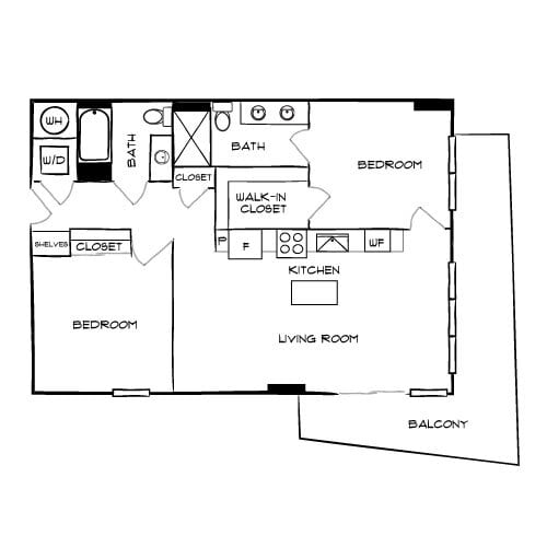 Modelo de apartamento: Design 1DL$3,0861 Dormitorio, 2 Baños, 974 sq ftDisponible Ahora![]()