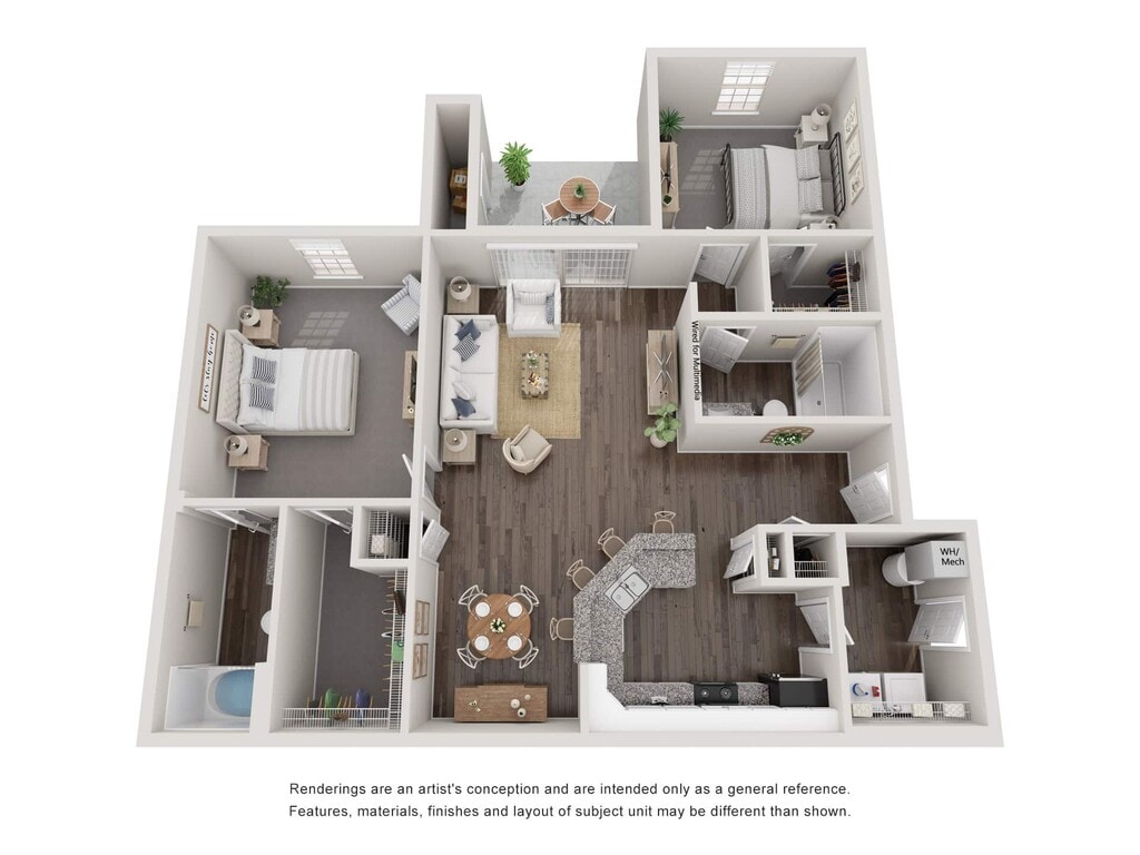Modelo de apartamento: Waterside IDesde $1,8803 Dormitorios, 2 Baños, 1350 sq ftDisponible Ahora![]()