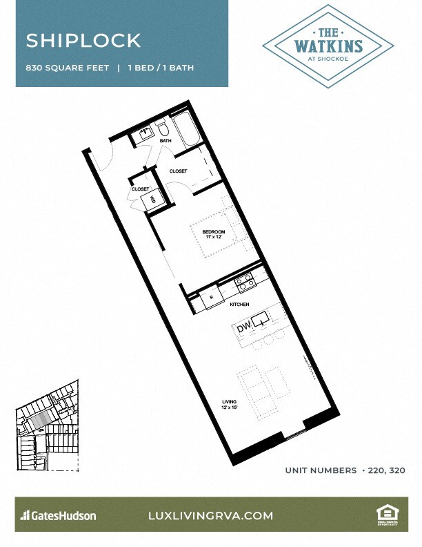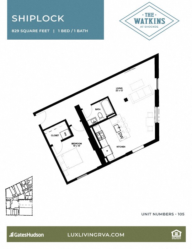 Modelo de apartamento: ShiplockDesde $1,4651 Dormitorio, 1 Baño, 772-830 sq ftDisponible December 3, 2025![]()