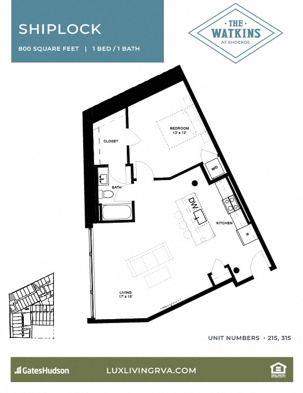 The Watkins at Shockoe se encuentra en el Barrio Shockoe Slip y el código postal 23219 de Richmond, VA. Esta comunidad está gestionada profesionalmente por Gates Hudson