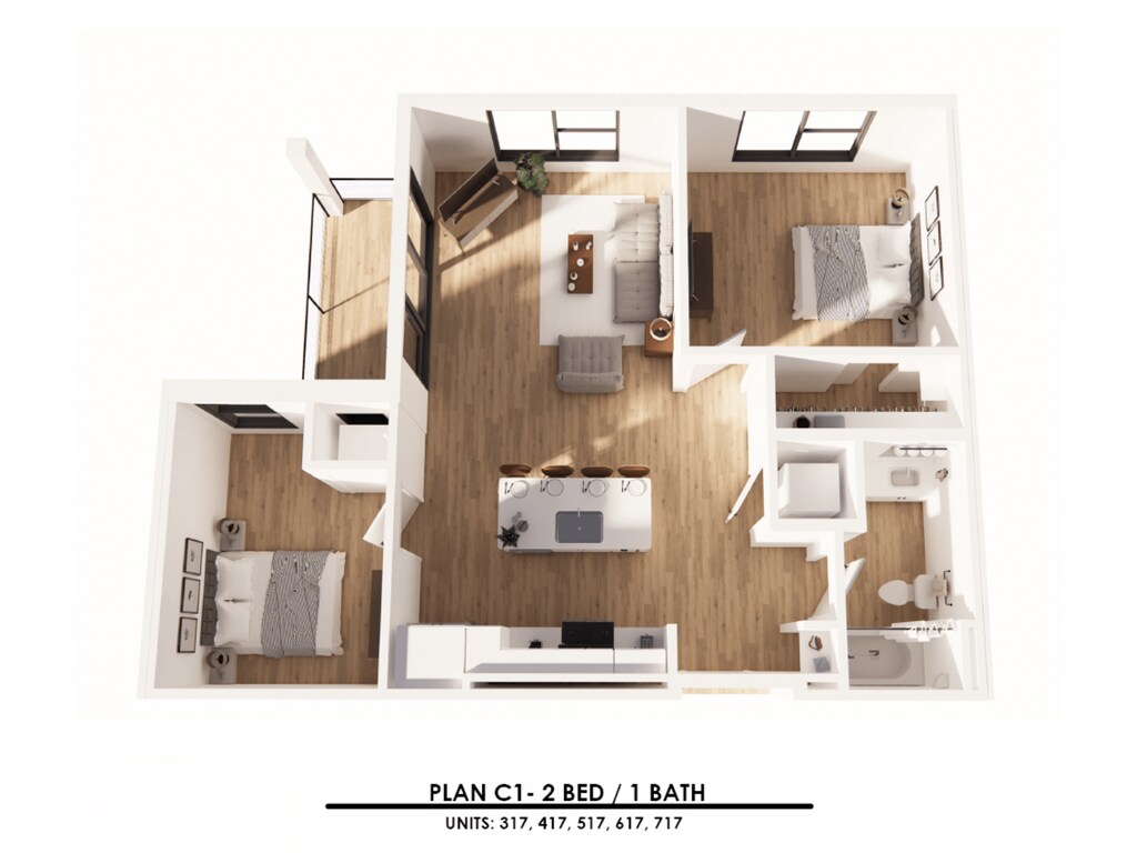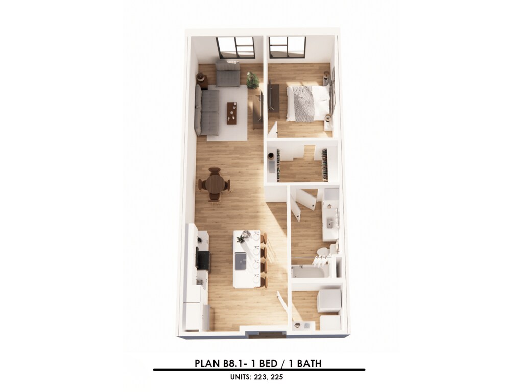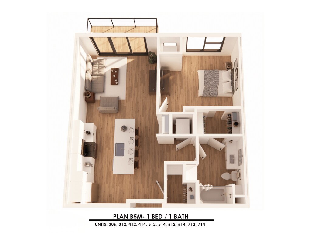 1 Dormitorio, 1 Baño, 707 pies²Disponible April 1, 2026Galería del Modelo