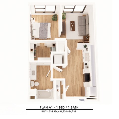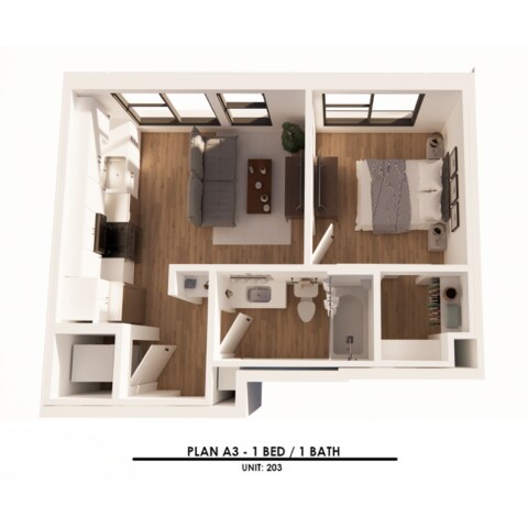 Modelo de apartamento: A3 StudioLlame para PreciosEstudio, 1 Baño, 475 sq ftNo DisponibleA3 Studio - Plano 1 A1 Studio
