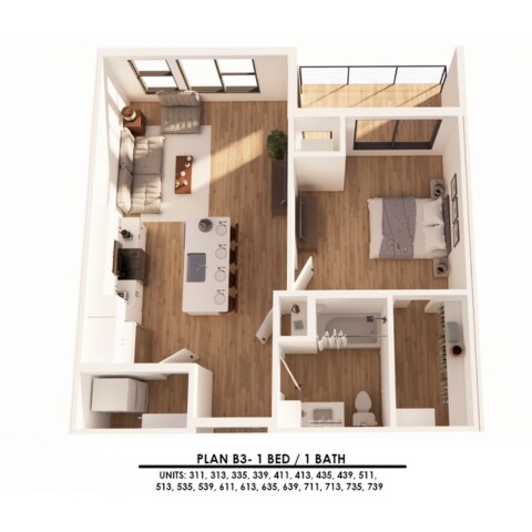 Modelo de apartamento: B7.3 1x1Llame para Precios1 Dormitorio, 1 Baño, 771 sq ftNo DisponibleB7.3 1x1 - Plano 1 B5M 1x1