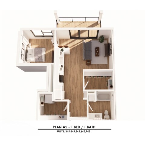 Modelo de apartamento: A2 StudioLlame para PreciosEstudio, 1 Baño, 675 sq ftNo DisponibleA2 Studio - Plano 1 1 Dormitorio
