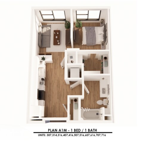 1 Dormitorio, 1 Baño, 712 pies²Galería del Modelo