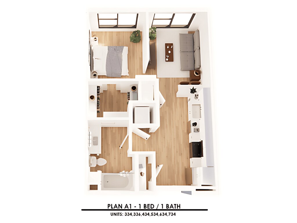 Modelo de apartamento: A2 StudioDesde $1,695Estudio, 1 Baño, 675 sq ftDisponible April 1, 2026![]()