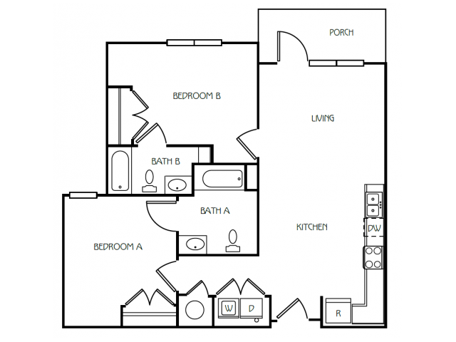Modelo de apartamento: Academy - South 2X2Desde $1,3692 Dormitorios, 2 Baños, 1012 sq ftDisponible June 12, 2026![]()