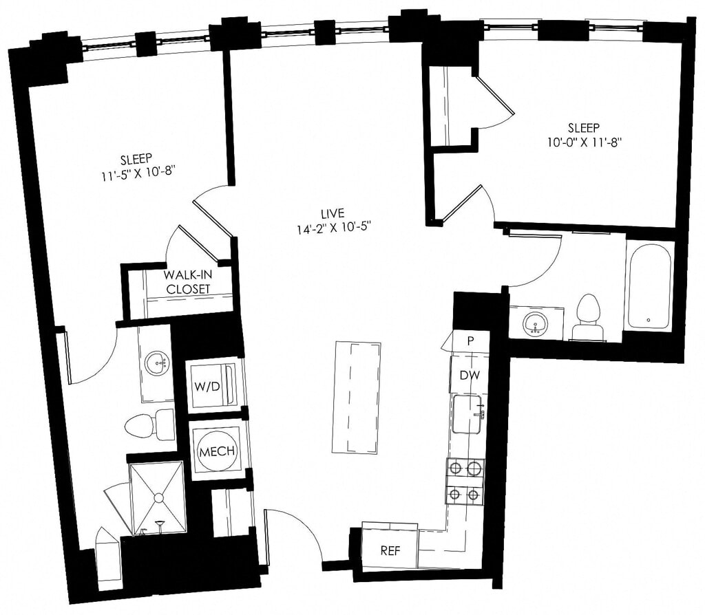 Modelo de apartamento: BH05Desde $2,8931 Dormitorio, 1 Baño, 609-734 sq ftDisponible Ahora![]()
