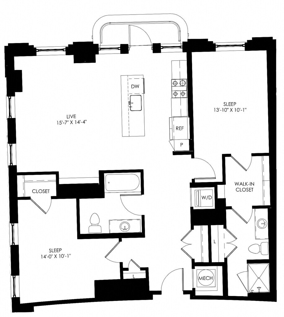 Modelo de apartamento: BW02Desde $2,8501 Dormitorio, 1 Baño, 608-646 sq ftDisponible Ahora![]()
