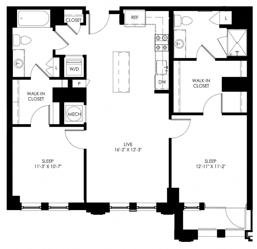 Modelo de apartamento: BW36Desde $3,2001 Dormitorio, 1 Baño, 794-797 sq ftDisponible Ahora![]()