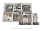 Modelo de apartamento: 2 BR 1.5 BathDesde $1,2992 Dormitorios, 1.5 Baños, 989 sq ftDisponible Ahora2 BR 1.5 Bath - Plano 1
