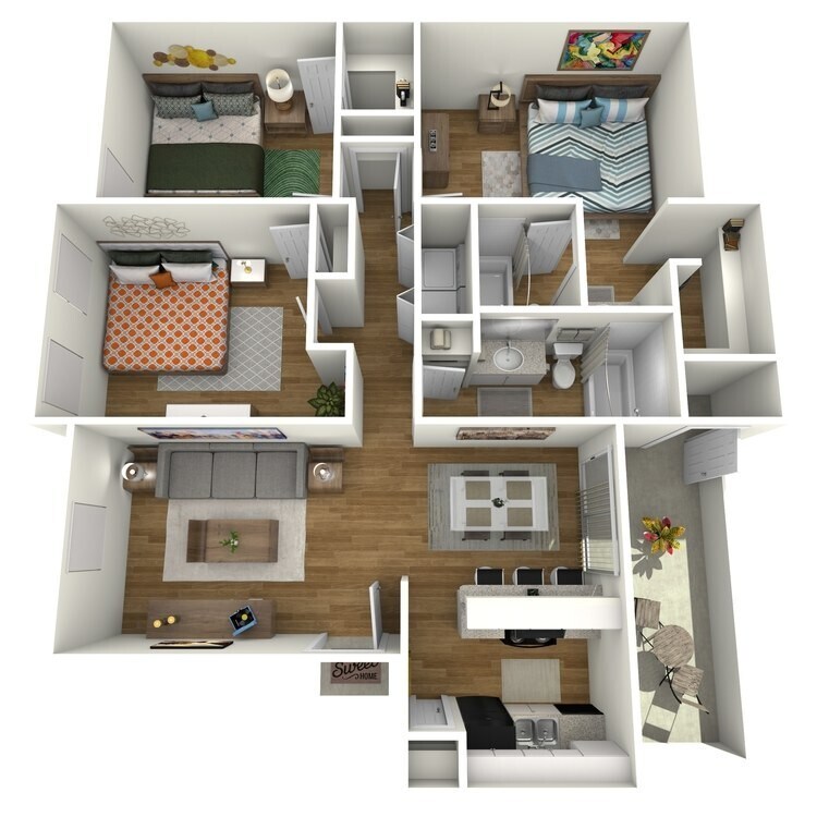 3 Dormitorios, 2 Baños, 1244 pies²El más grandeEsta opción tiene las unidades más grandes para este modeloGalería del Modelo