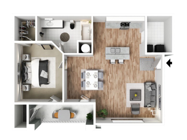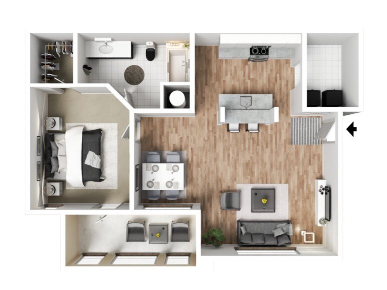 1 Dormitorio, 1 Baño, 855 pies²Disponible AhoraGalería del Modelo