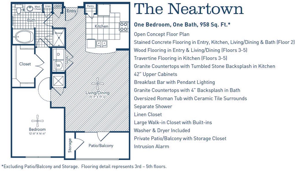 Modelo de apartamento: The NeartownDesde $1,6321 Dormitorio, 1 Baño, 958 sq ftDisponible AhoraLos planos de la planta son una interpretación artística. Todas las dimensiones son aproximadas. Los tamaños o el detalle del producto real y sus especificaciones pueden variar. No todas las características están disponibles en todos los hogares para rentar. Los precios y la disponibilidad están sujetos a cambios. El alquiler que se muestra es mensual. Se pueden aplicar ciertos cargos, por ejemplo, entrega de paquetes, recolección de basura, agua, servicios, etc. Depositos varian. Consulta a un representante para conocer detalles.