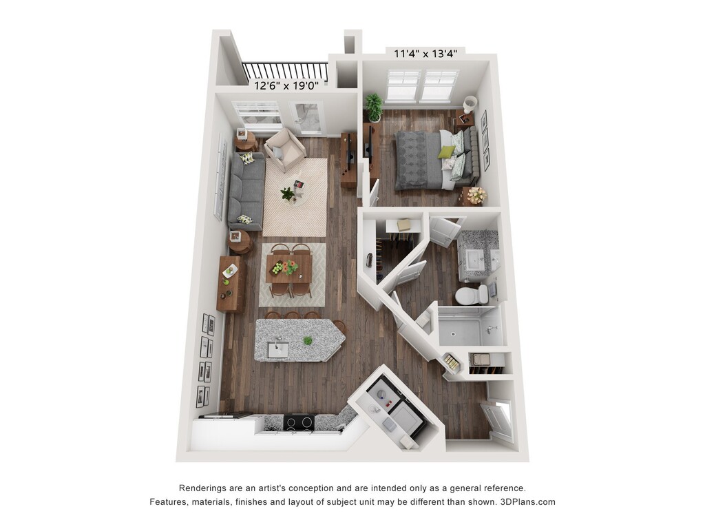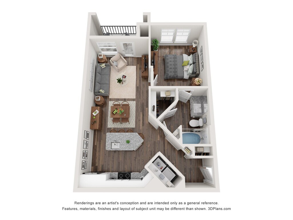 Modelo de apartamento: A1aDesde $1,3451 Dormitorio, 1 Baño, 729 sq ftDisponible Ahora![]()