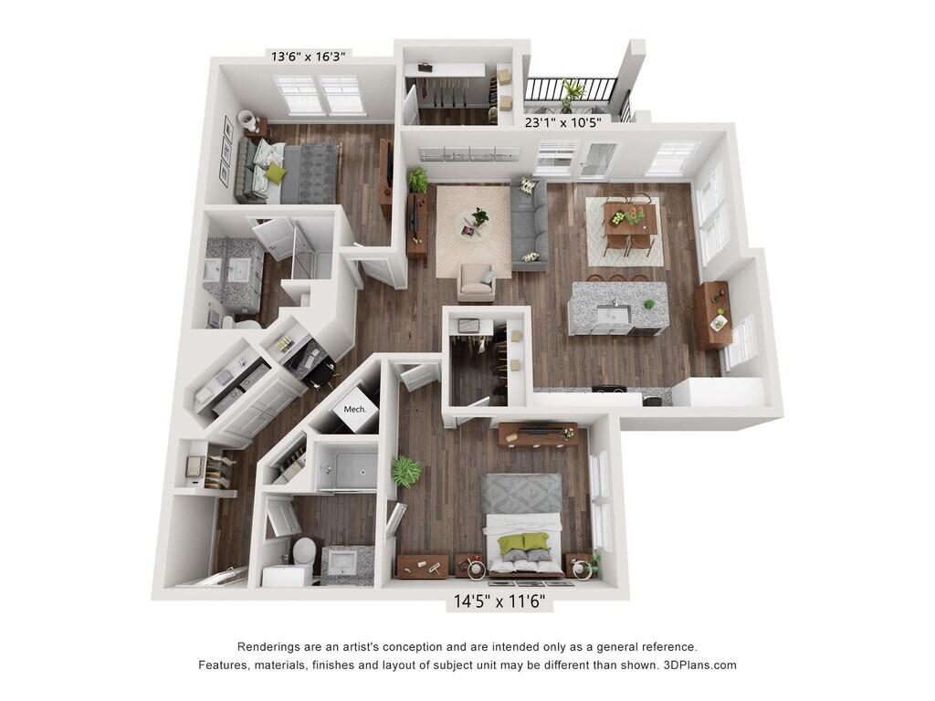1 Dormitorio, 1 Baño, 867 pies²Disponible AhoraGalería del Modelo