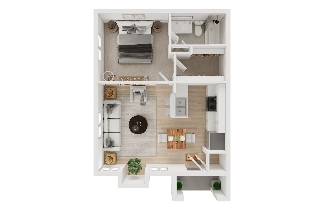 1 Dormitorio, 1 Baño, 569 pies²Disponible AhoraGalería del Modelo