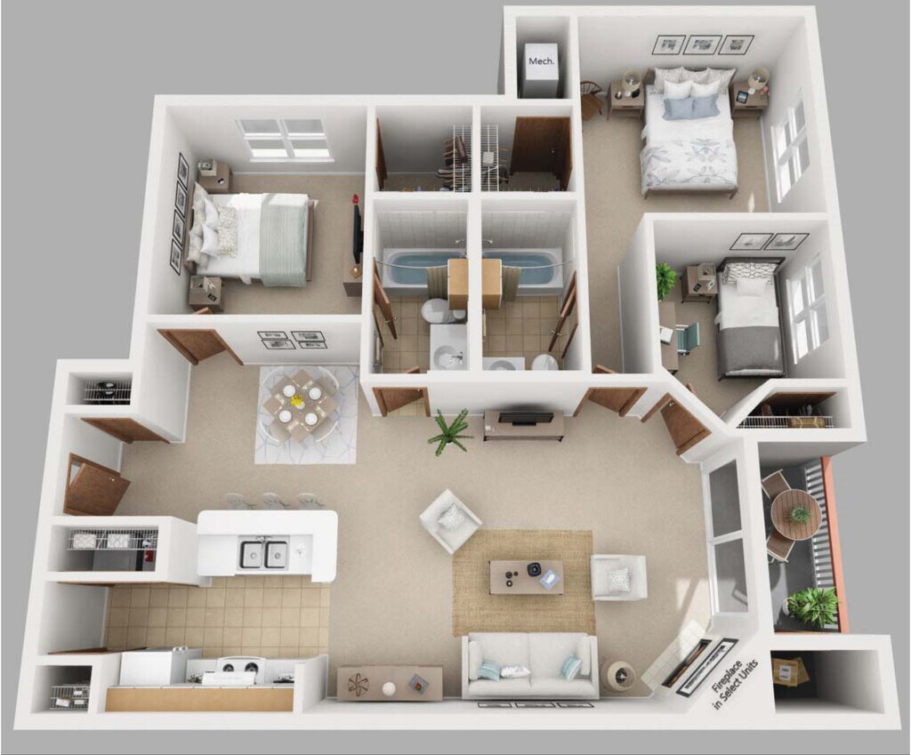 Modelo de apartamento: Lorraine DeluxeDesde $2,5352 Dormitorios, 2 Baños, 1050 sq ftDisponible AhoraPlanosFotos![]()