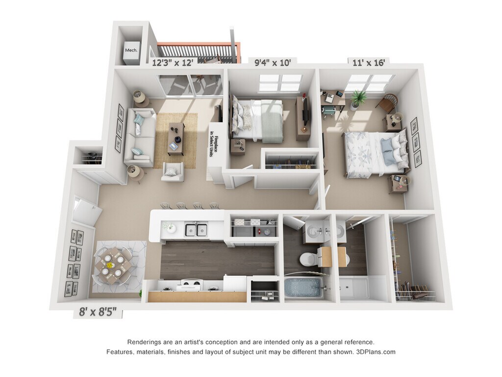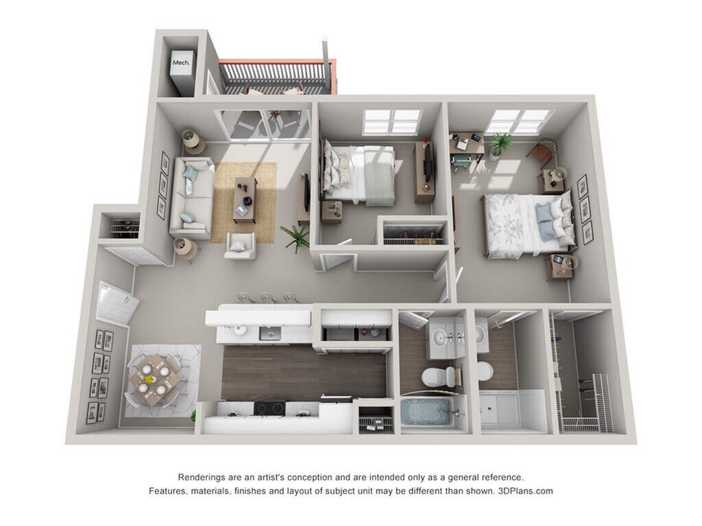 2 Dormitorios, 2 Baños, 1050 pies²Disponible AhoraGalería del Modelo