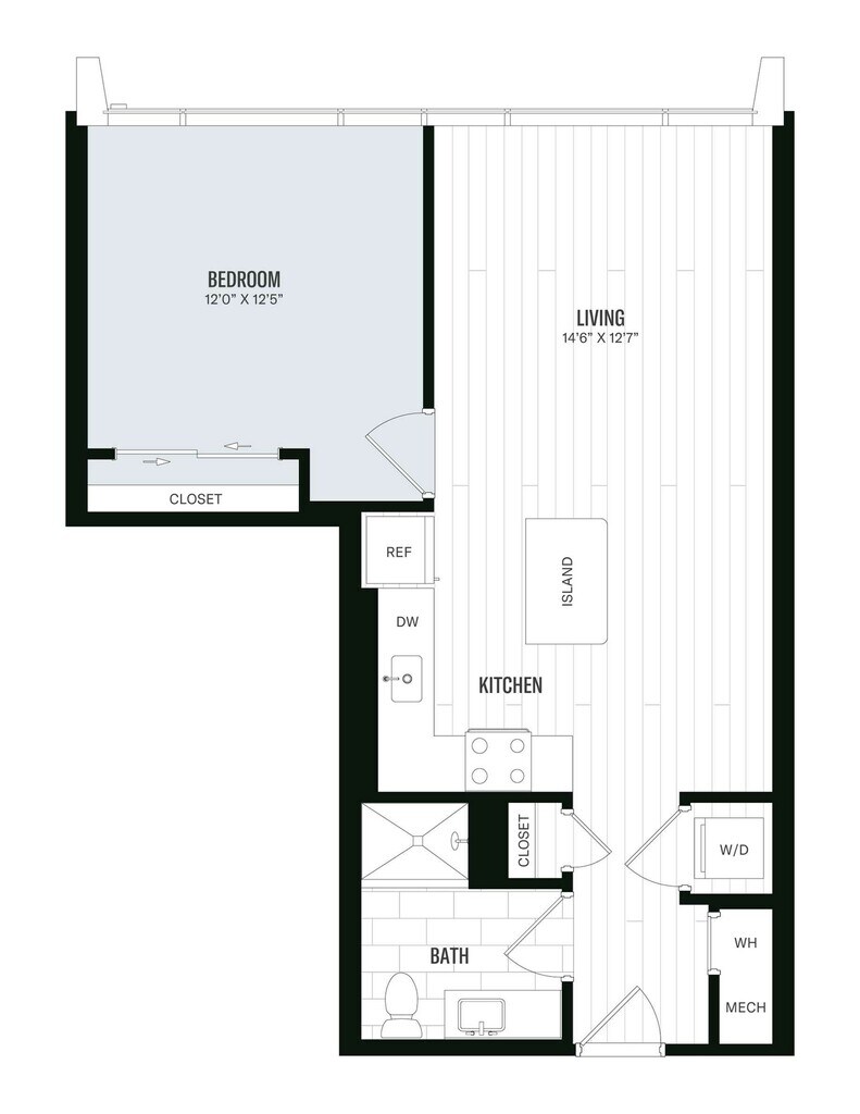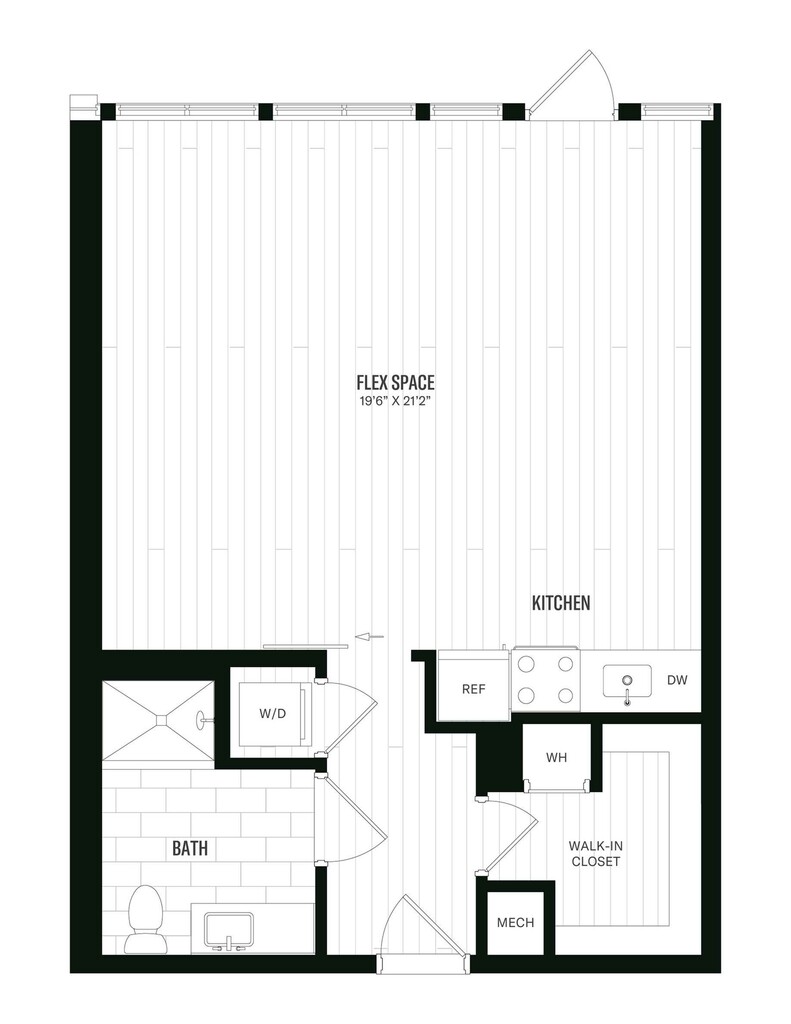 Studio | 613 sqft - Plano 1 Unidad de apartamento: 630-337Modelo de apartamento: Studio | 613 sqftDesde $2,366Estudio, 1 Baño, 613 sq ftDisponible AhoraStudio w/ Loft | 675 sqft