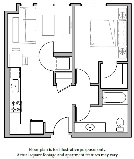 Estudio, 1 Baño, 558 pies²Disponible AhoraGalería del Modelo