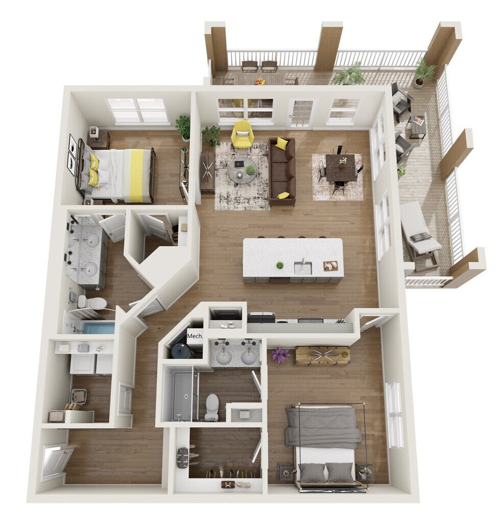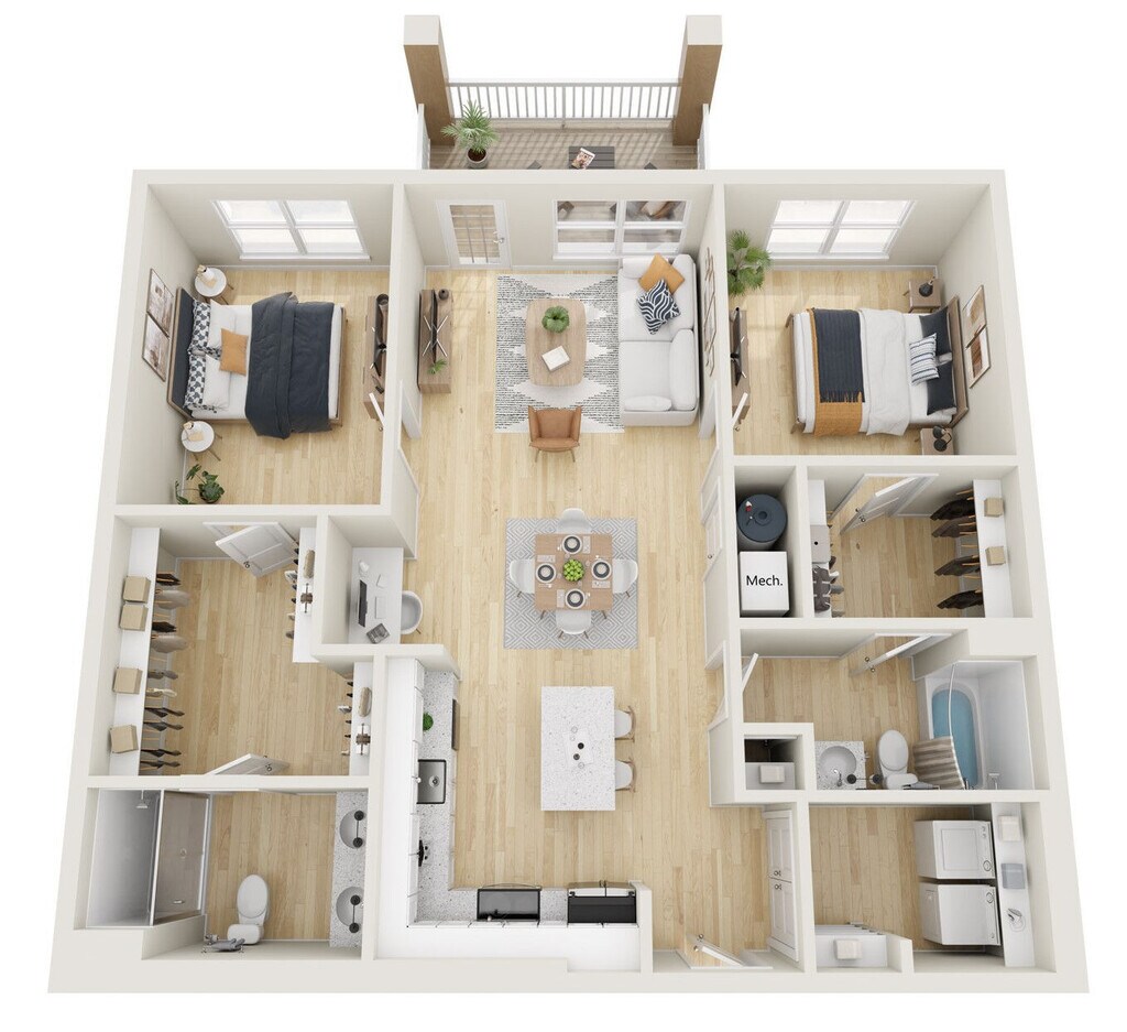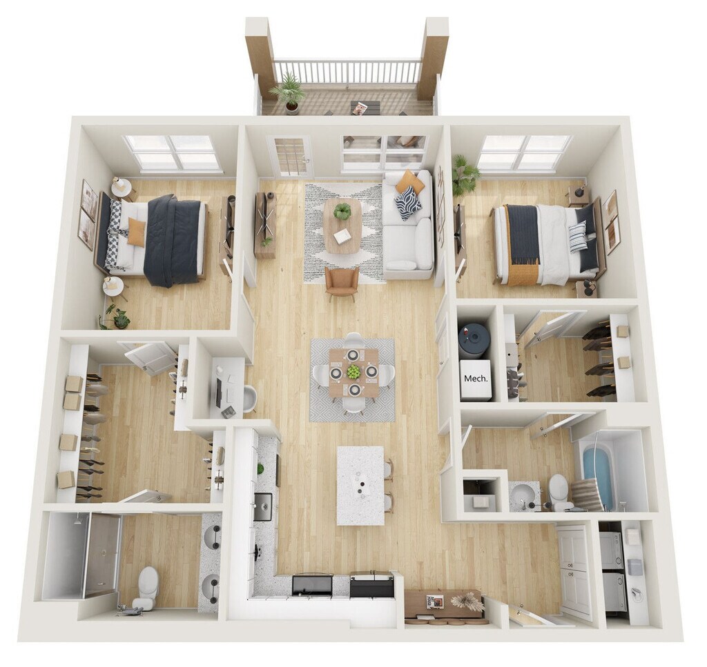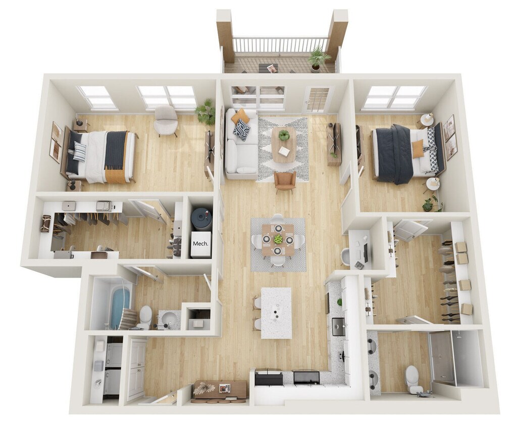 1 Dormitorio, 1 Baño, 809 pies²Disponible AhoraGalería del Modelo
