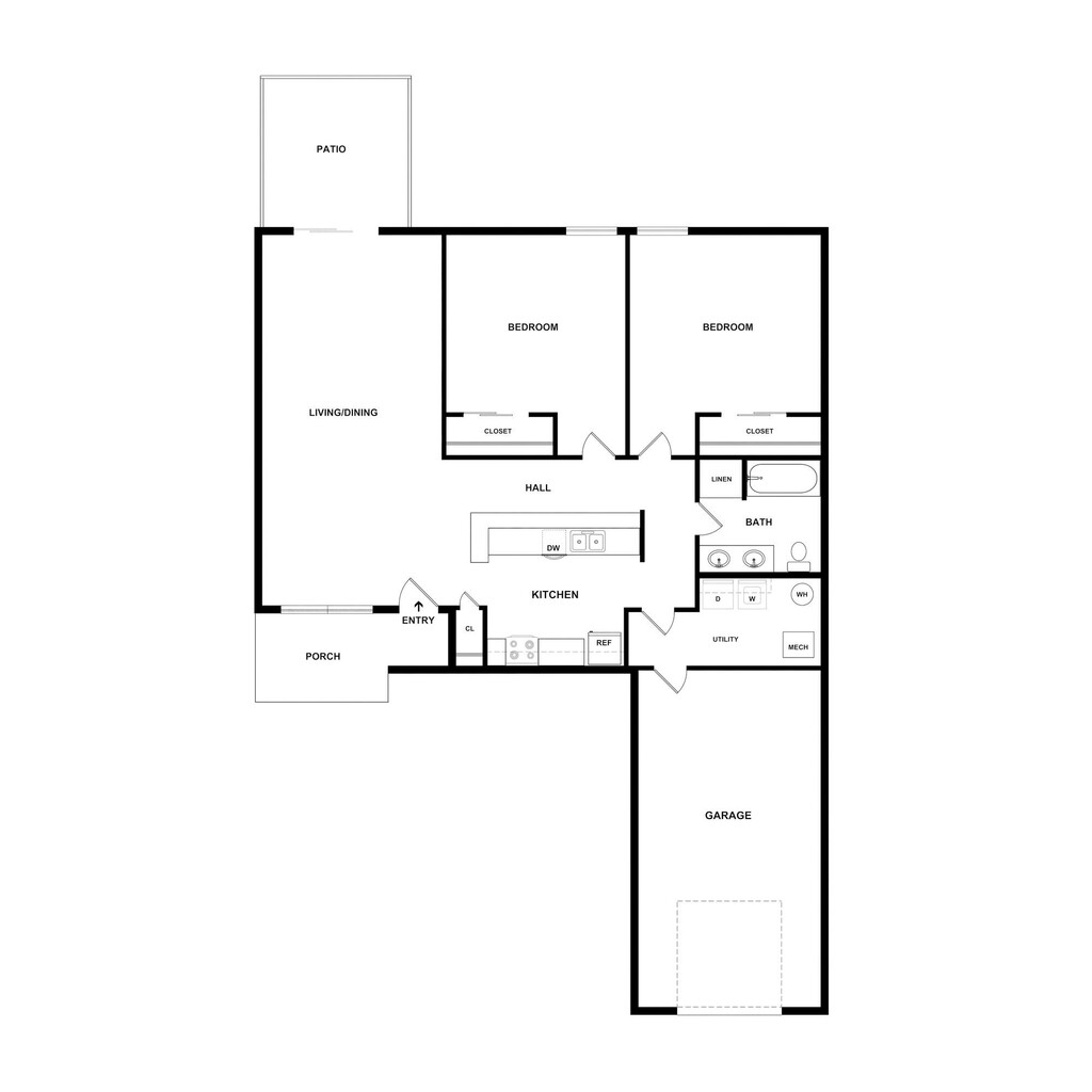 Modelo de apartamento: Second Floor 2 Bedroom$1,3552 Dormitorios, 1 Baño, 1093 sq ftNo Disponible![]()