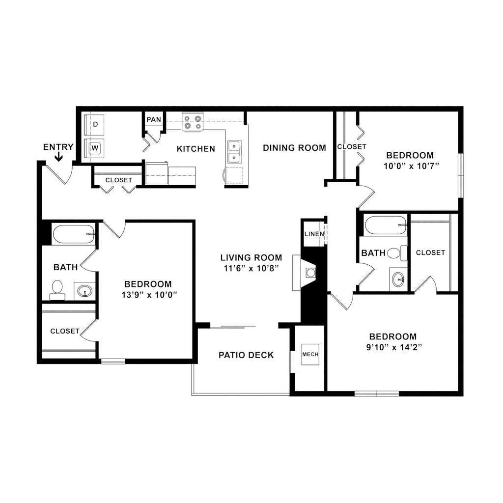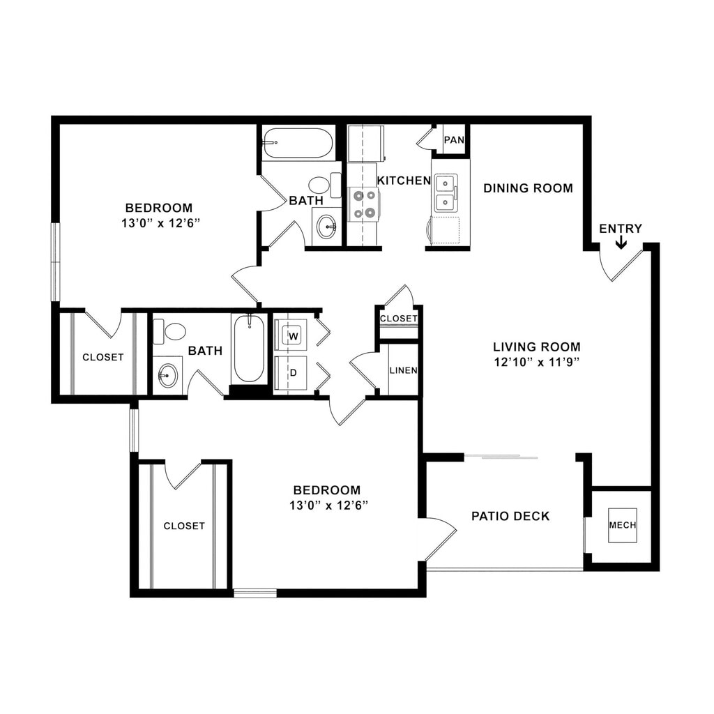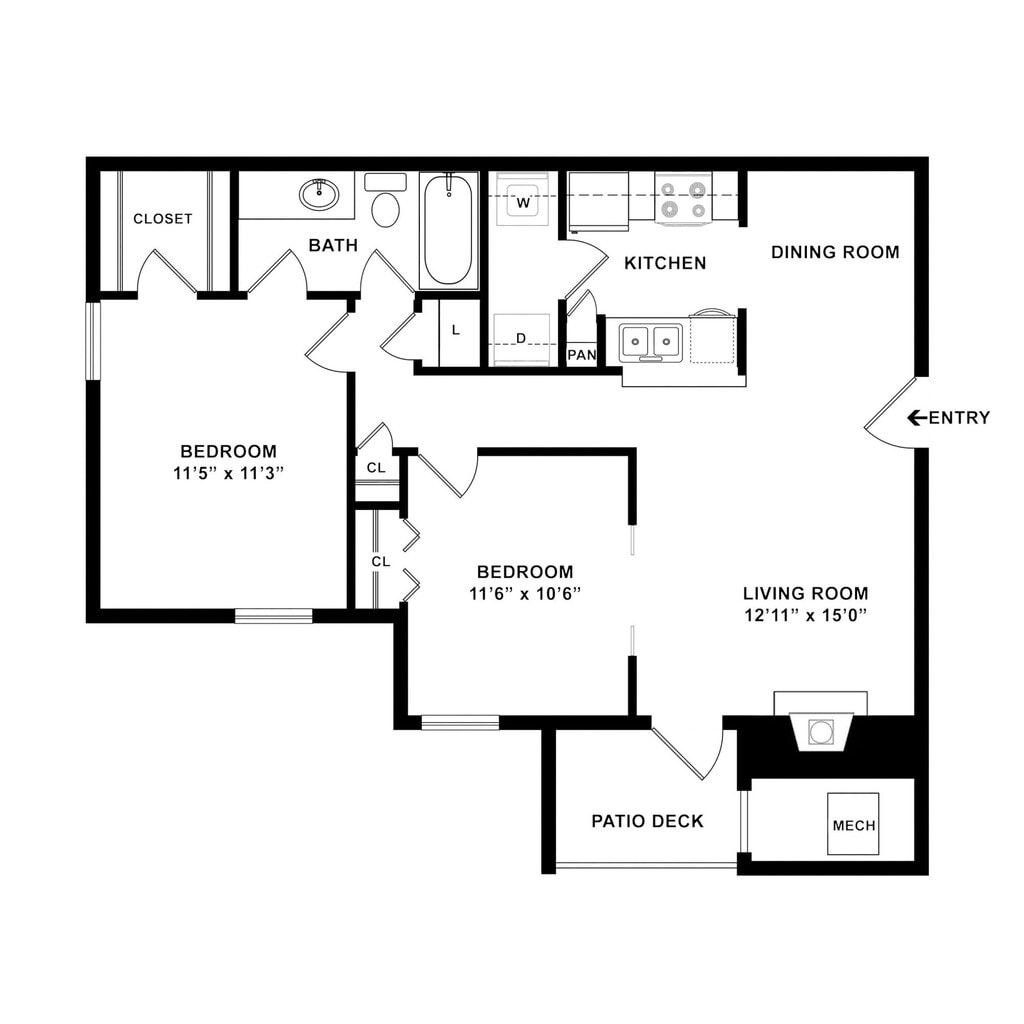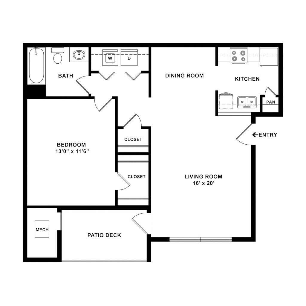 Modelo de apartamento: 1x1-MapleDesde $9551 Dormitorio, 1 Baño, 715 sq ftDisponible Ahora![]()