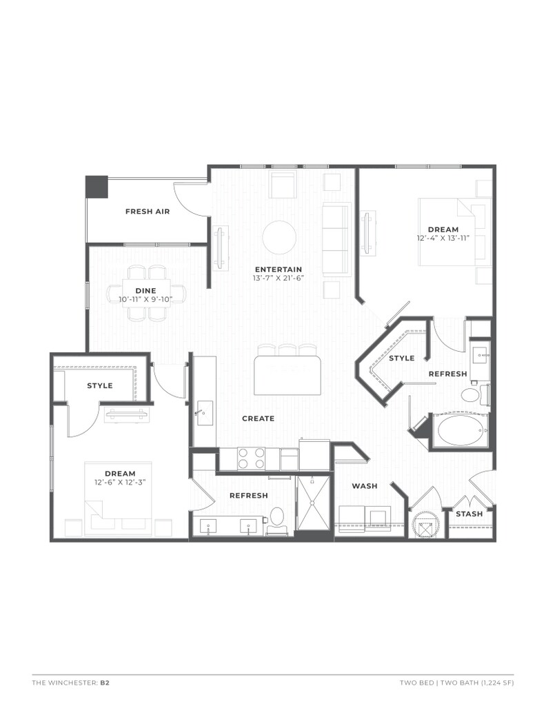 Modelo de apartamento: B2Desde $1,5002 Dormitorios, 2 Baños, 1224 sq ftDisponible January 13, 2026![]()