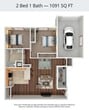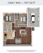 2 Dormitorios, 1 Baño, 1091 pies²Galería del Modelo