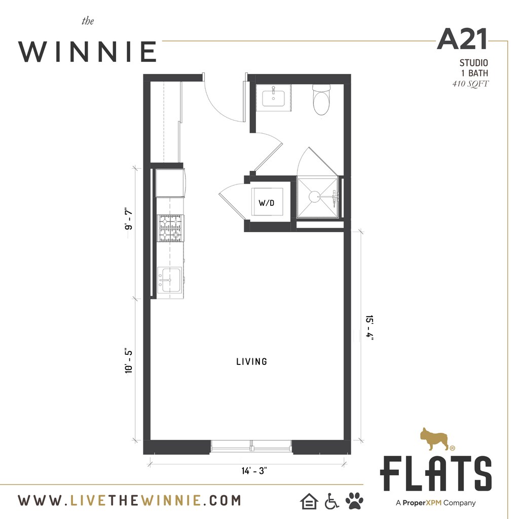 The Winnie ofrece apartamentos de Estudio desde $1,550 con 410 pies cuadrados. Aquí está el precio actual y la disponibilidad: