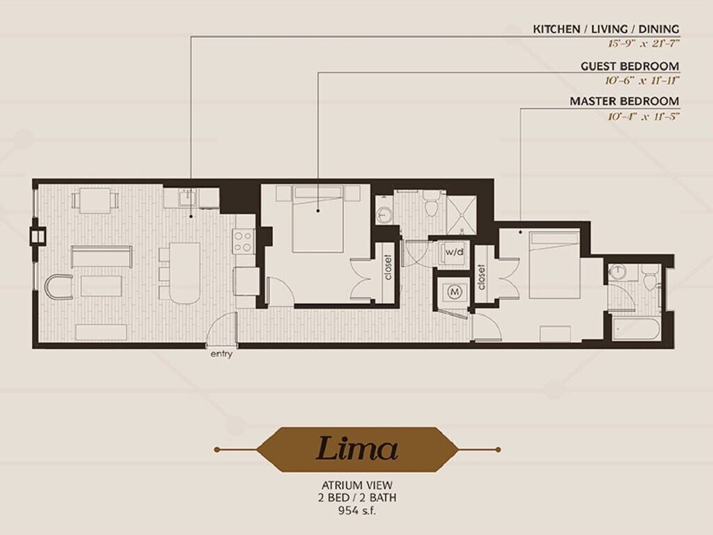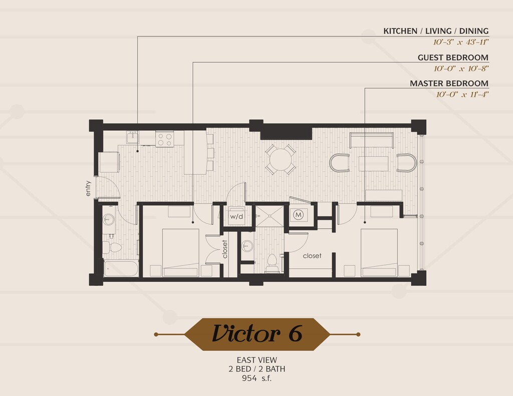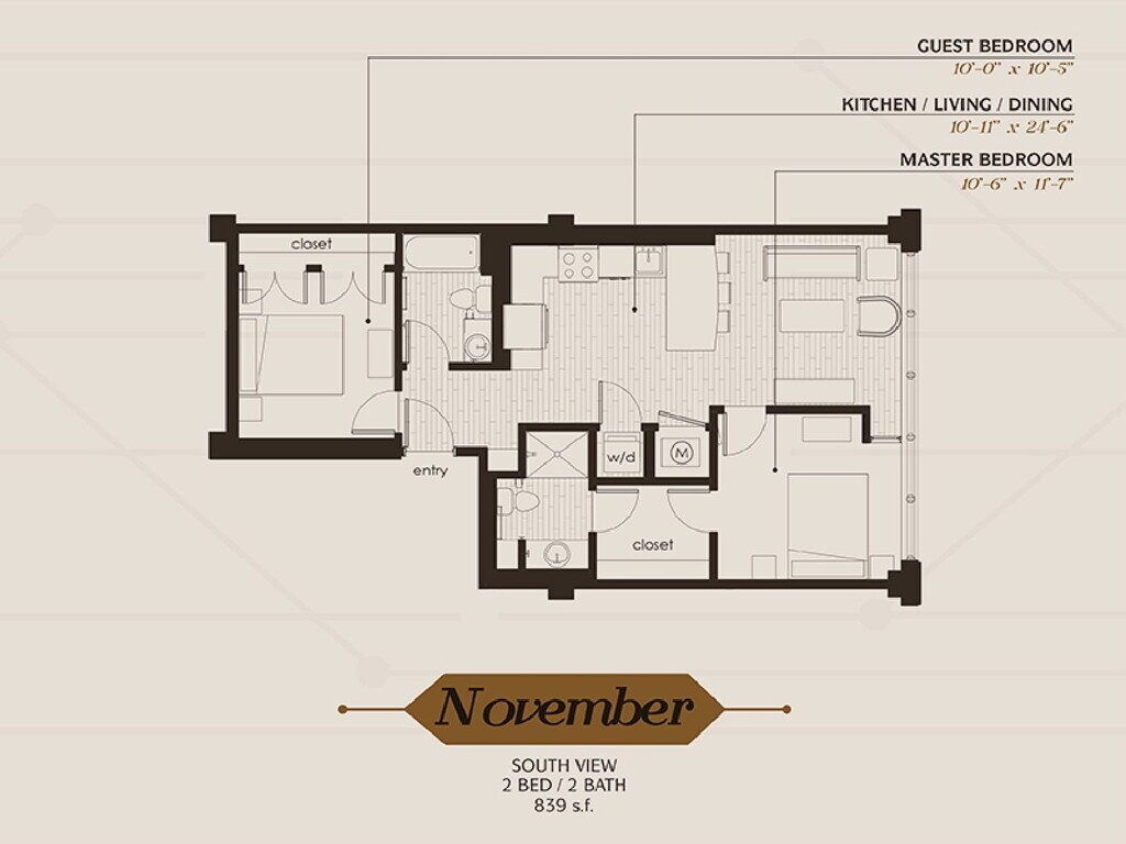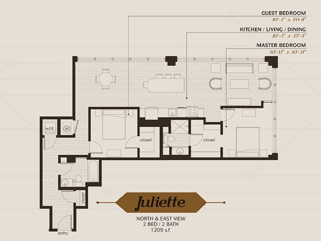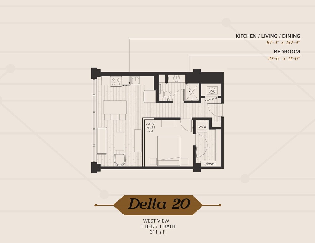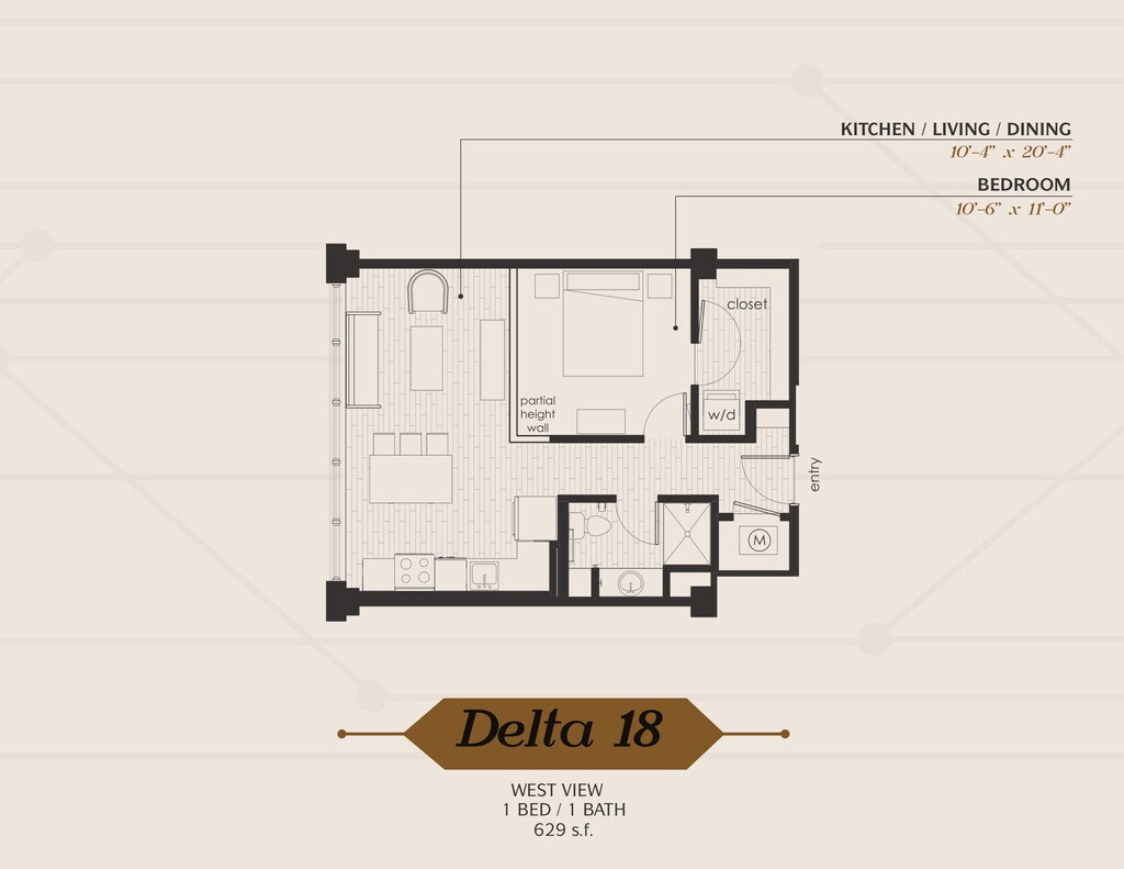 1 Dormitorio, 1 Baño, 689 pies²Disponible AhoraGalería del Modelo