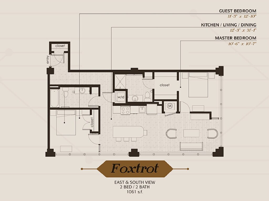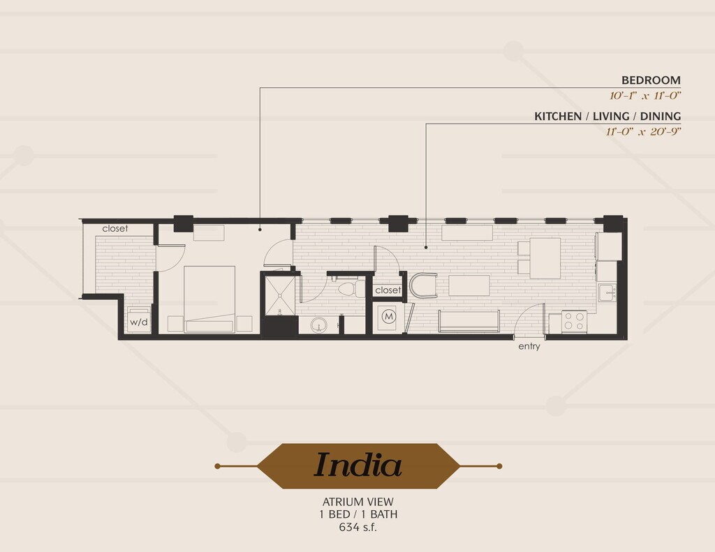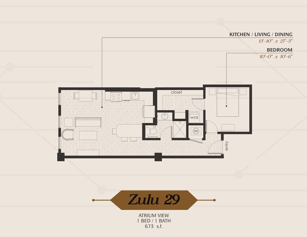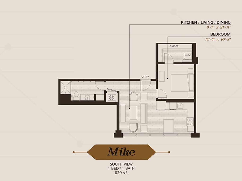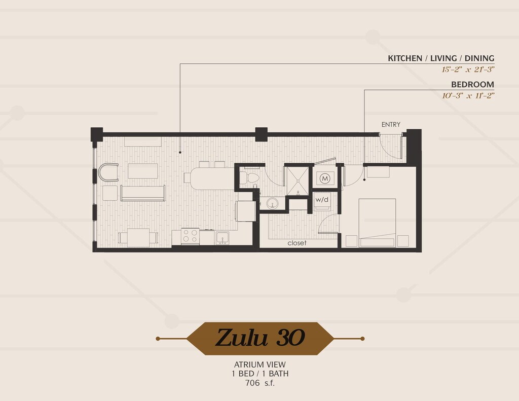 Modelo de apartamento: ZuluDesde $1,1401 Dormitorio, 1 Baño, 674-706 sq ftDisponible AhoraPlanosFotos![]()