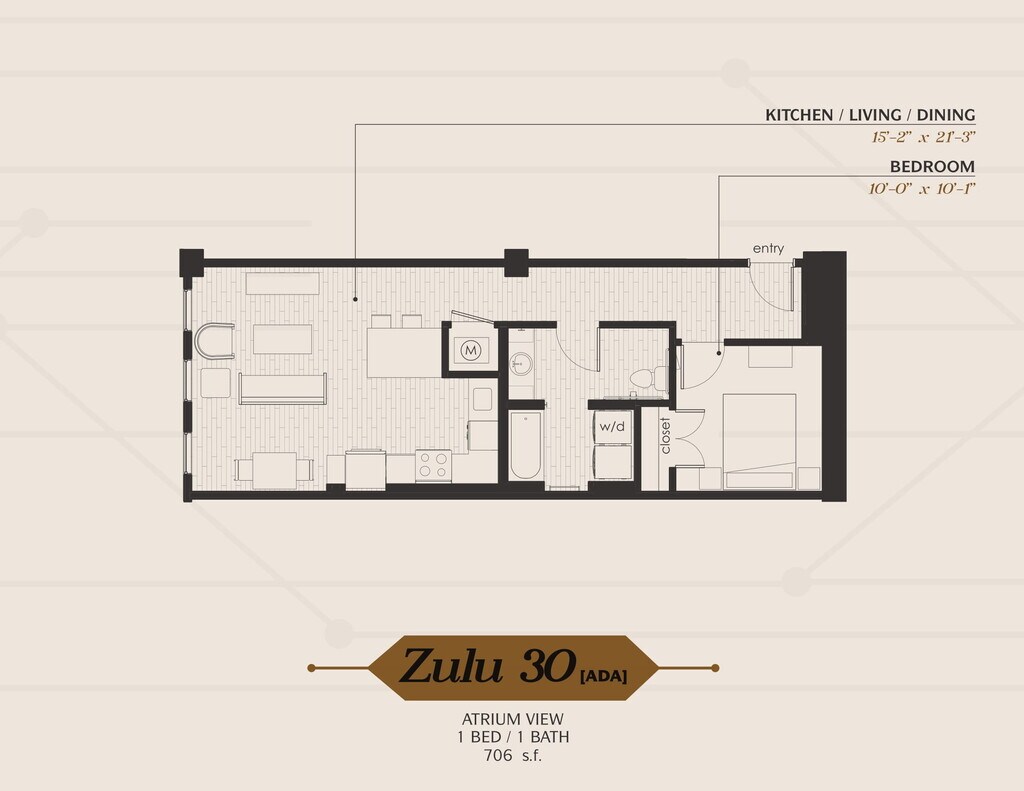1 Dormitorio, 1 Baño, 674-706 pies²Disponible AhoraGalería del Modelo