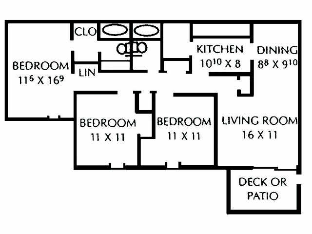 3 Dormitorios, 2 Baños, 1247 pies²Galería del Modelo
