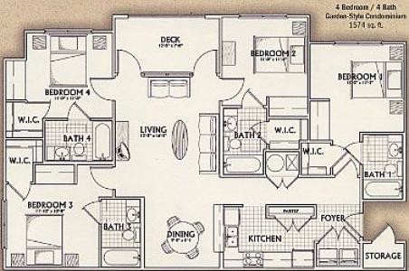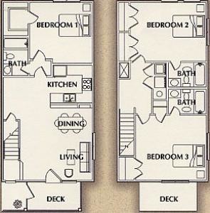 Modelo de apartamento: 3 Bedroom TownhomeDesde $6003 Dormitorios, 3 Baños, 1369 sq ftNo Disponible3 Bedroom Townhome - Plano 1 4 Dormitorios