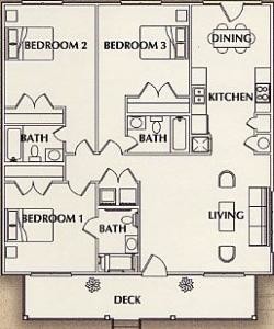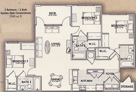 Modelo de apartamento: 3 Bedroom FlatDesde $6003 Dormitorios, 3 Baños, 1396 sq ftDisponible Ahora3 Bedroom Flat - Plano 1 3 Bedroom Townhome