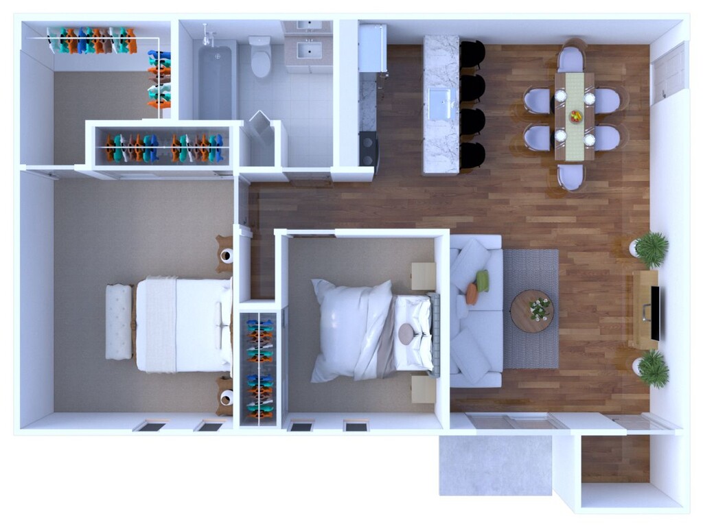 2 Dormitorios, 1 Baño, 828 pies²Disponible AhoraGalería del Modelo