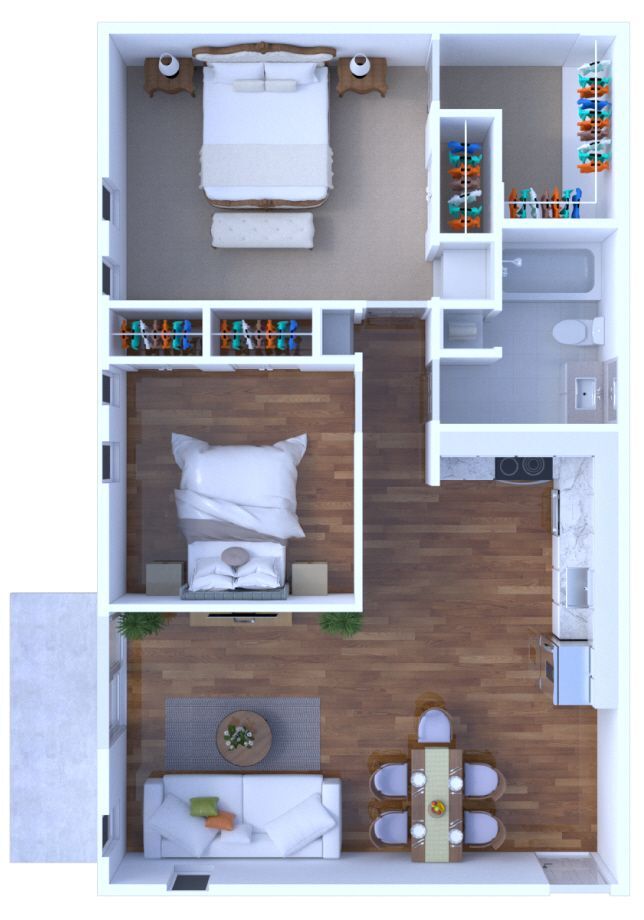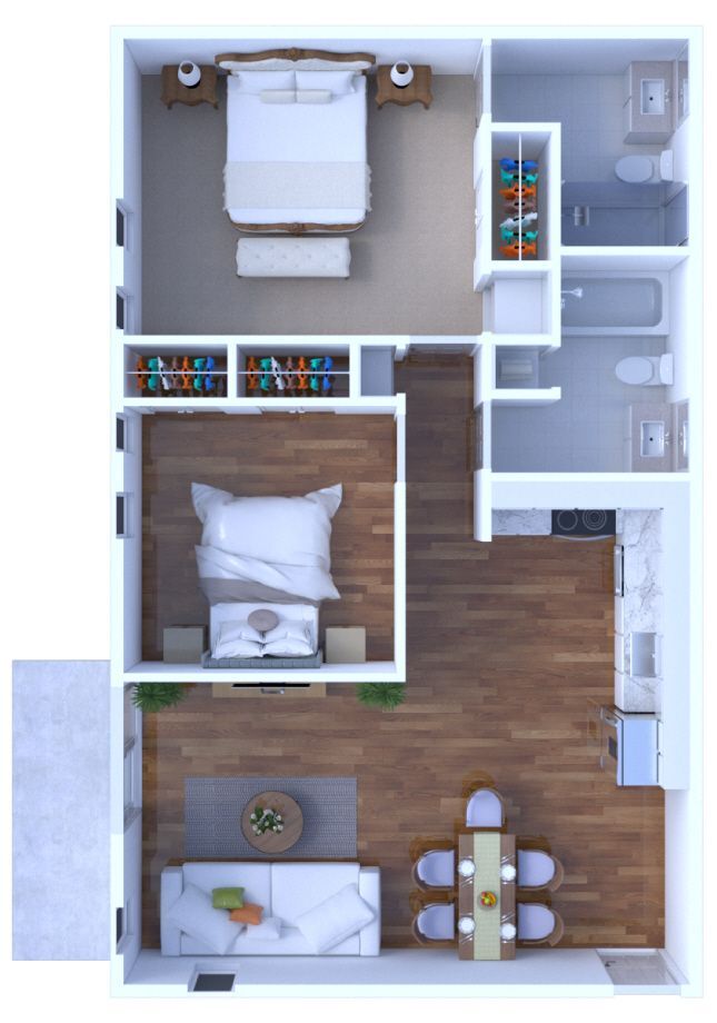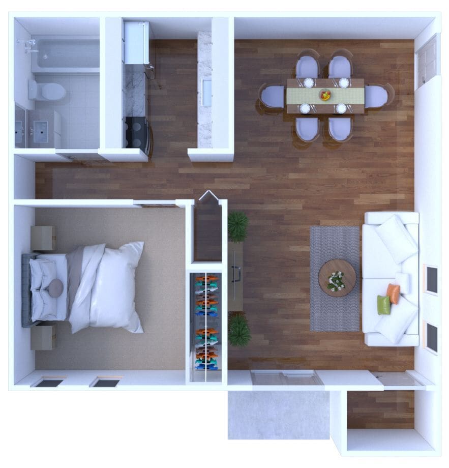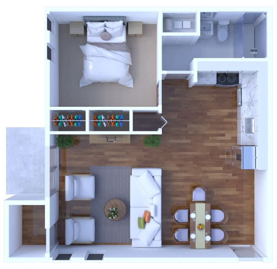 1 Dormitorio, 1 Baño, 677 pies²Disponible AhoraGalería del Modelo