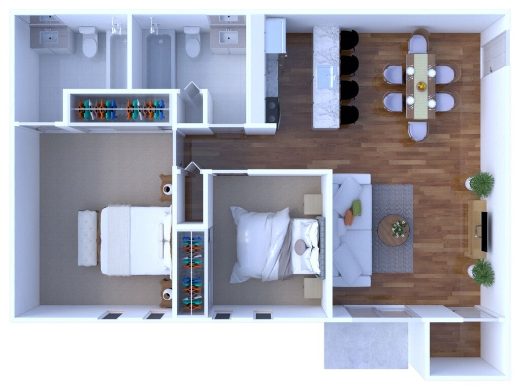 2 Dormitorios, 2 Baños, 850 pies²Galería del Modelo