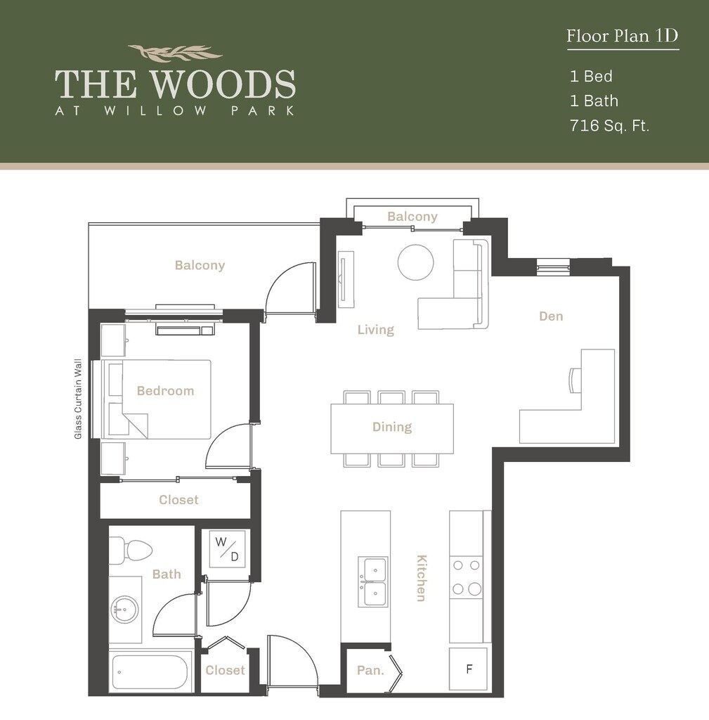 Modelo de apartamento: 1 BR +D 1 BADesde $1,7801 Dormitorio, 1 Baño, 716 sq ftDisponible December 1, 2025![]()