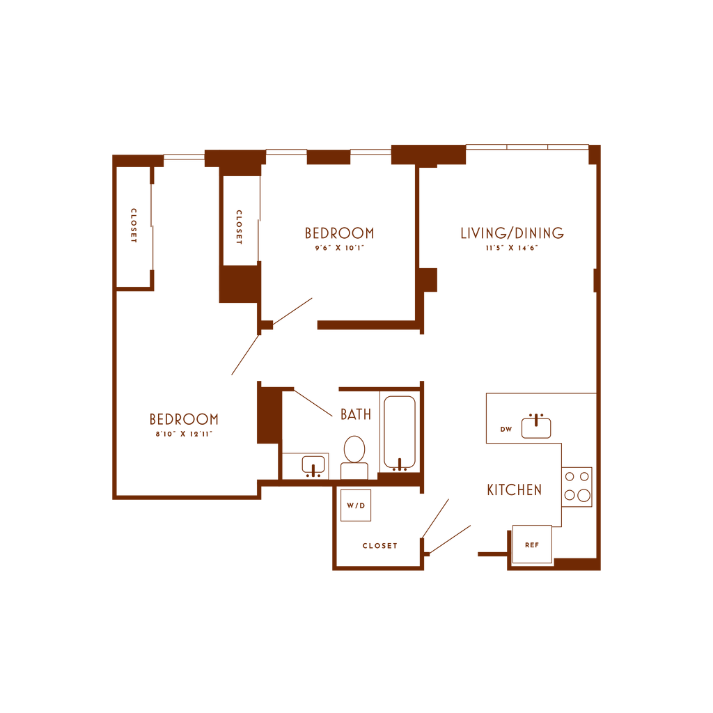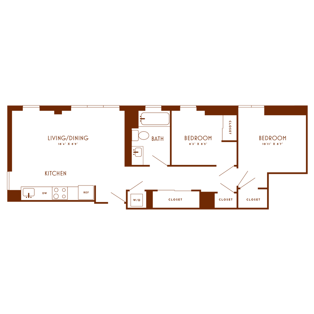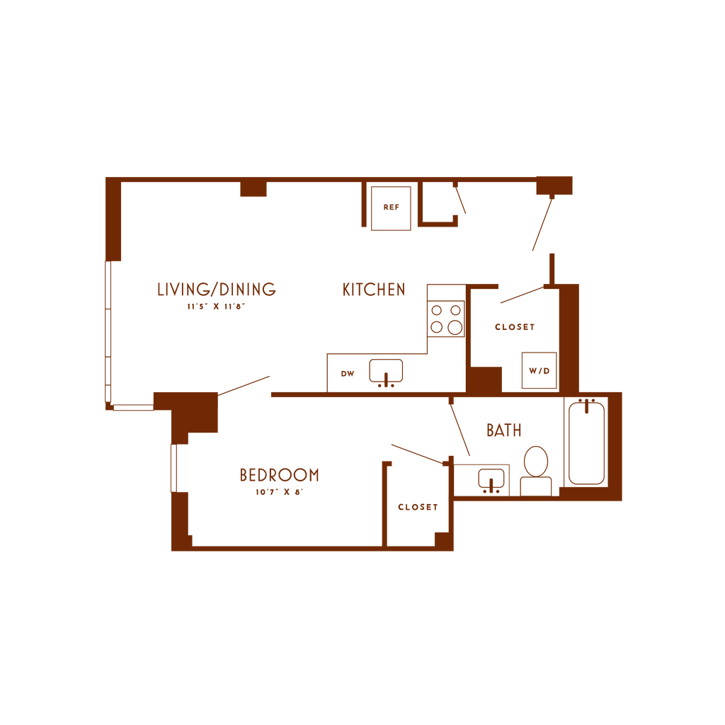Modelo de apartamento: 1 Bed/1 Bath-B2Desde $2,8501 Dormitorio, 1 Baño, 447 sq ftDisponible Ahora![]()