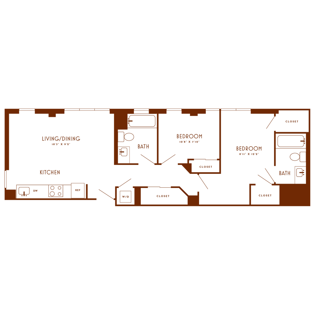 1 Bed/1 Bath-B2 - Plano 1 Unidad de apartamento: 102Modelo de apartamento: 1 Bed/1 Bath-B2$2,8501 Dormitorio, 1 Baño, 447 sq ftDisponible Ahora![]()