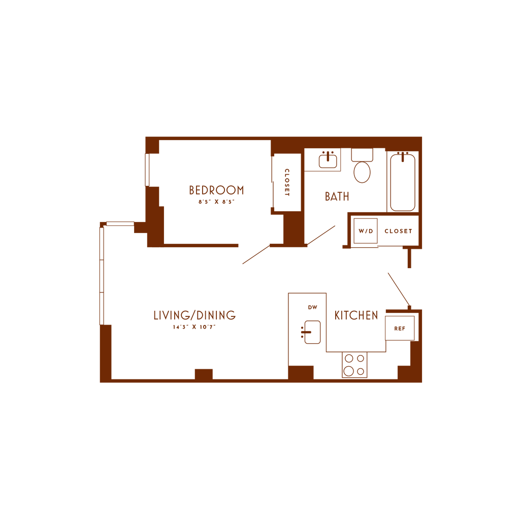Estudio, 1 Baño, 453 pies²Disponible AhoraGalería del Modelo