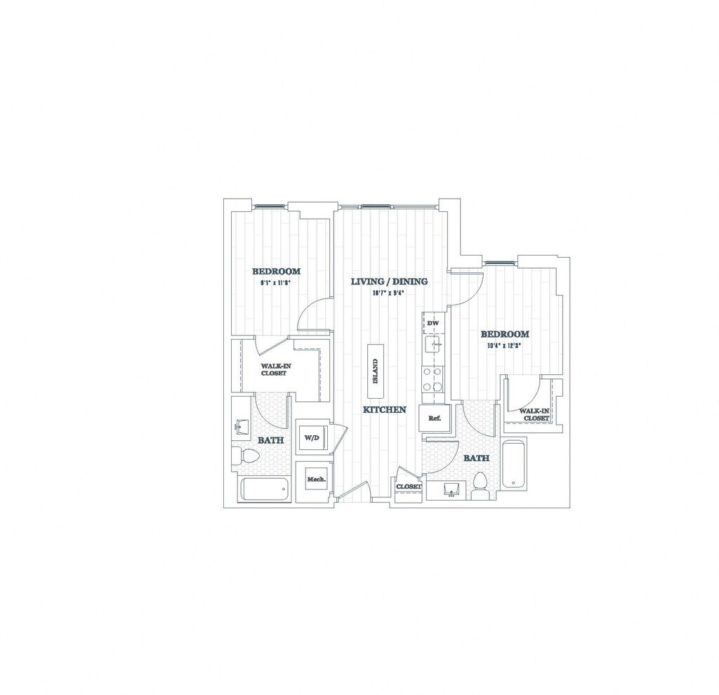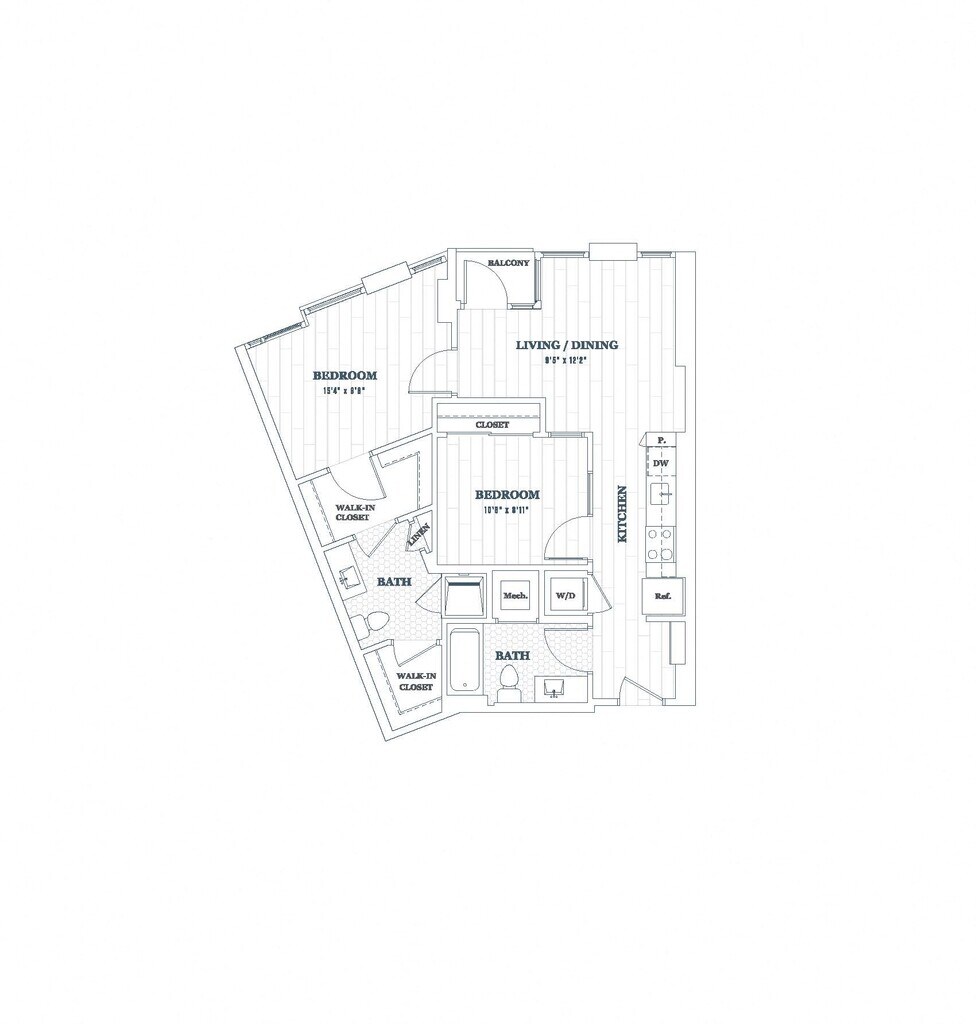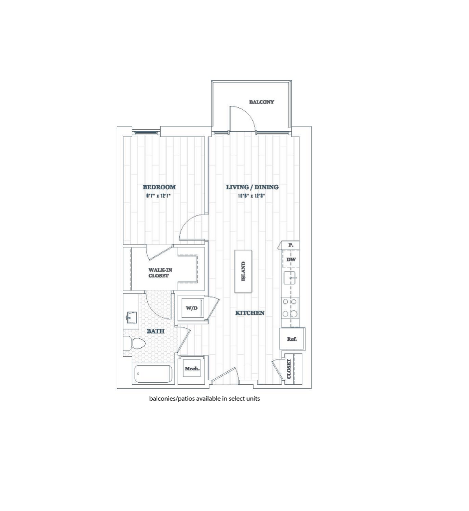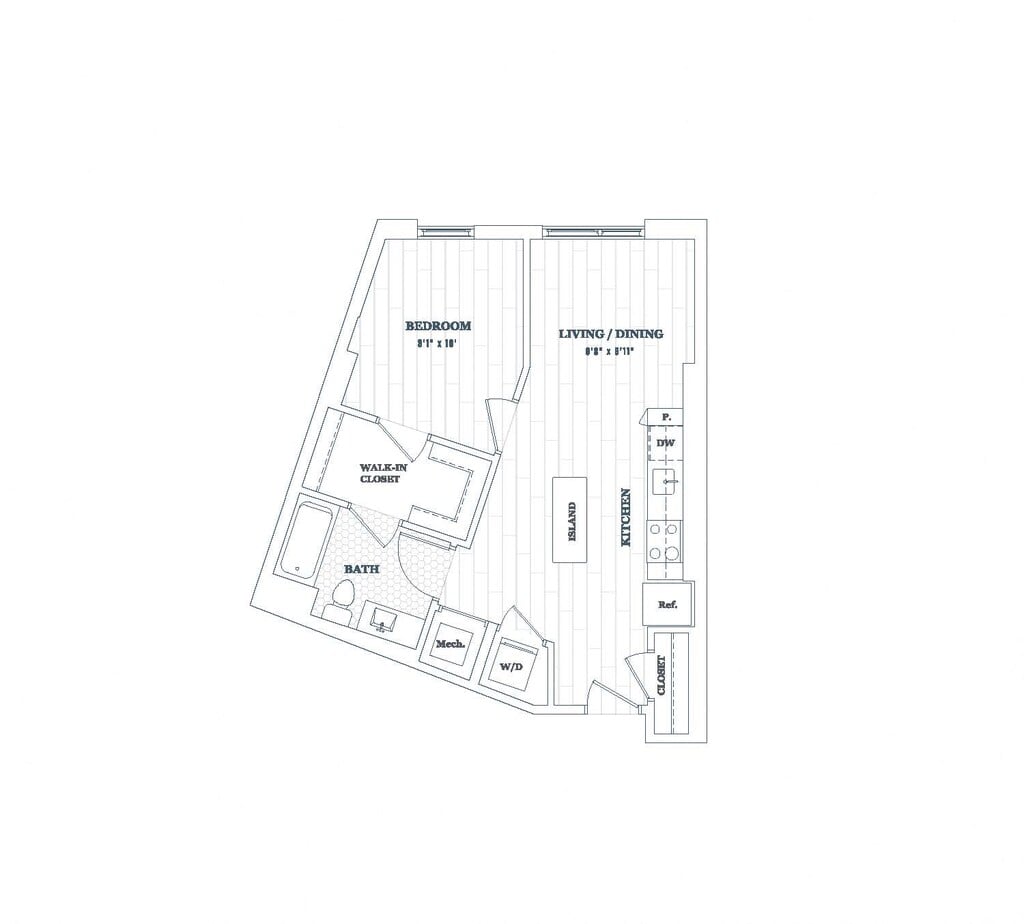 Modelo de apartamento: 1 Bedroom - 1 Bath | a081 Dormitorio, 1 Baño, 661 sq ftDisponible Ahora![]()