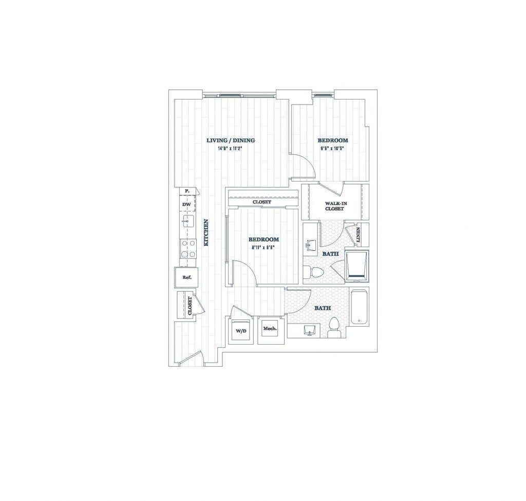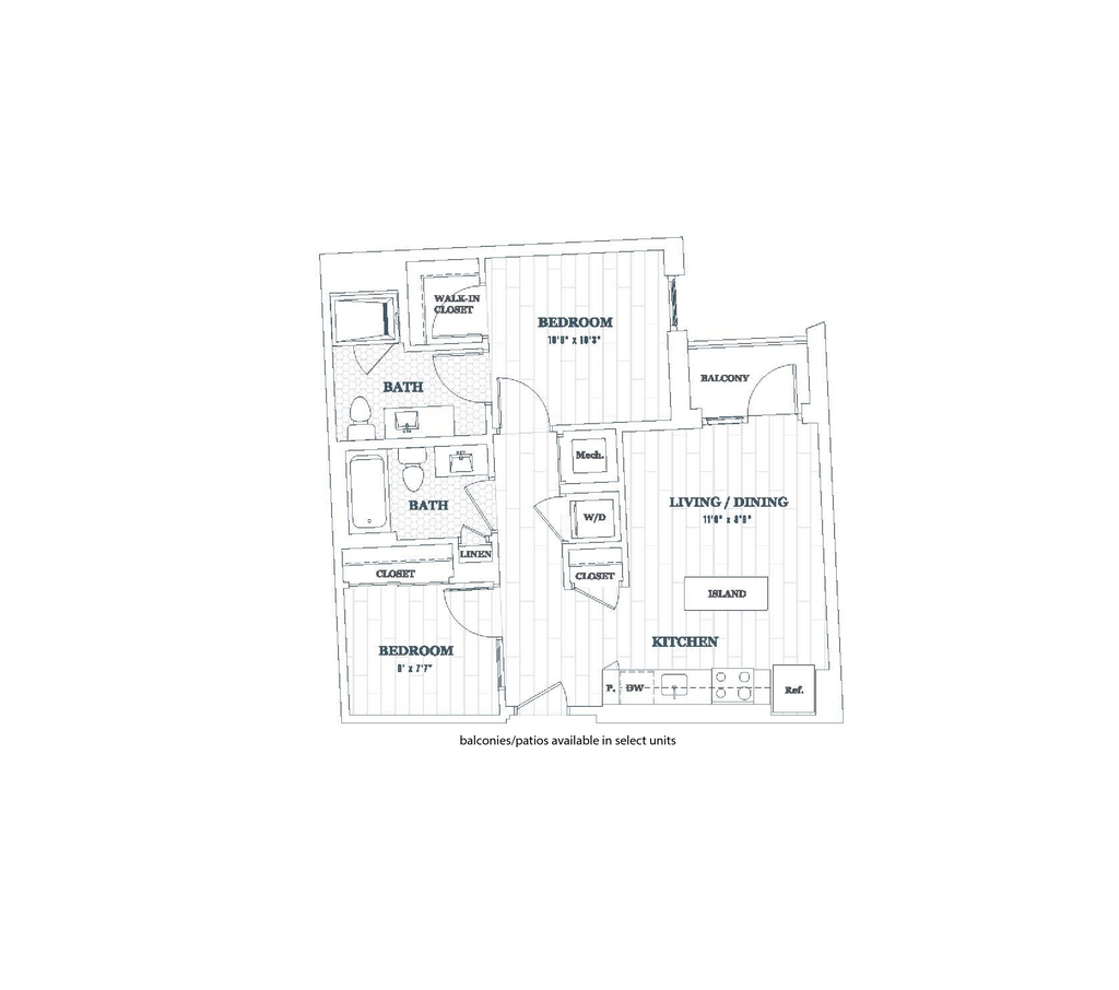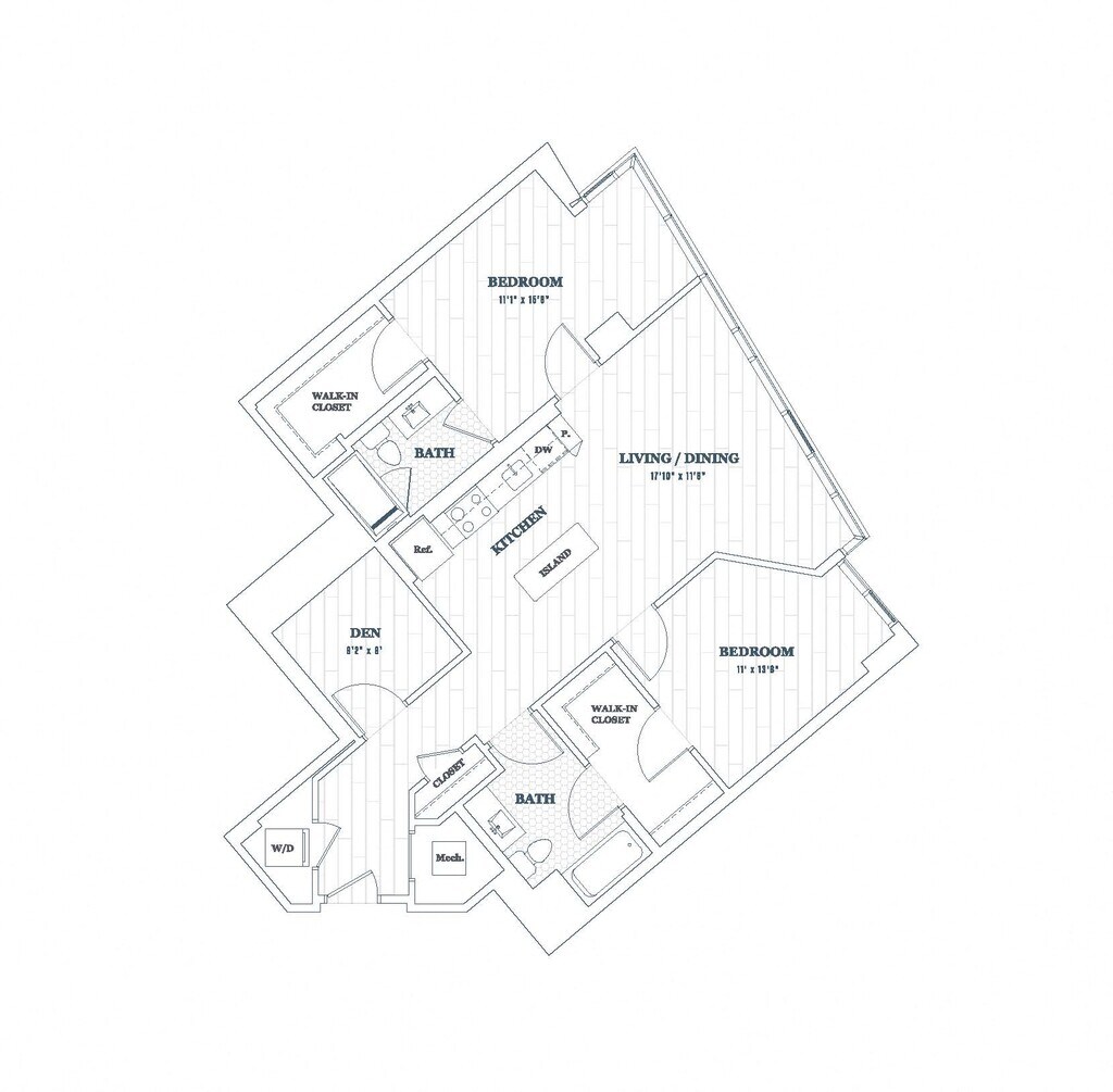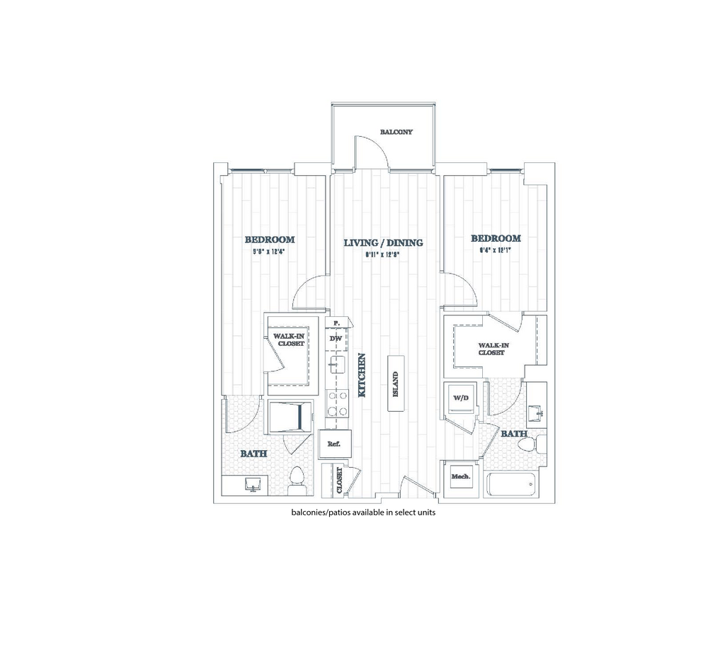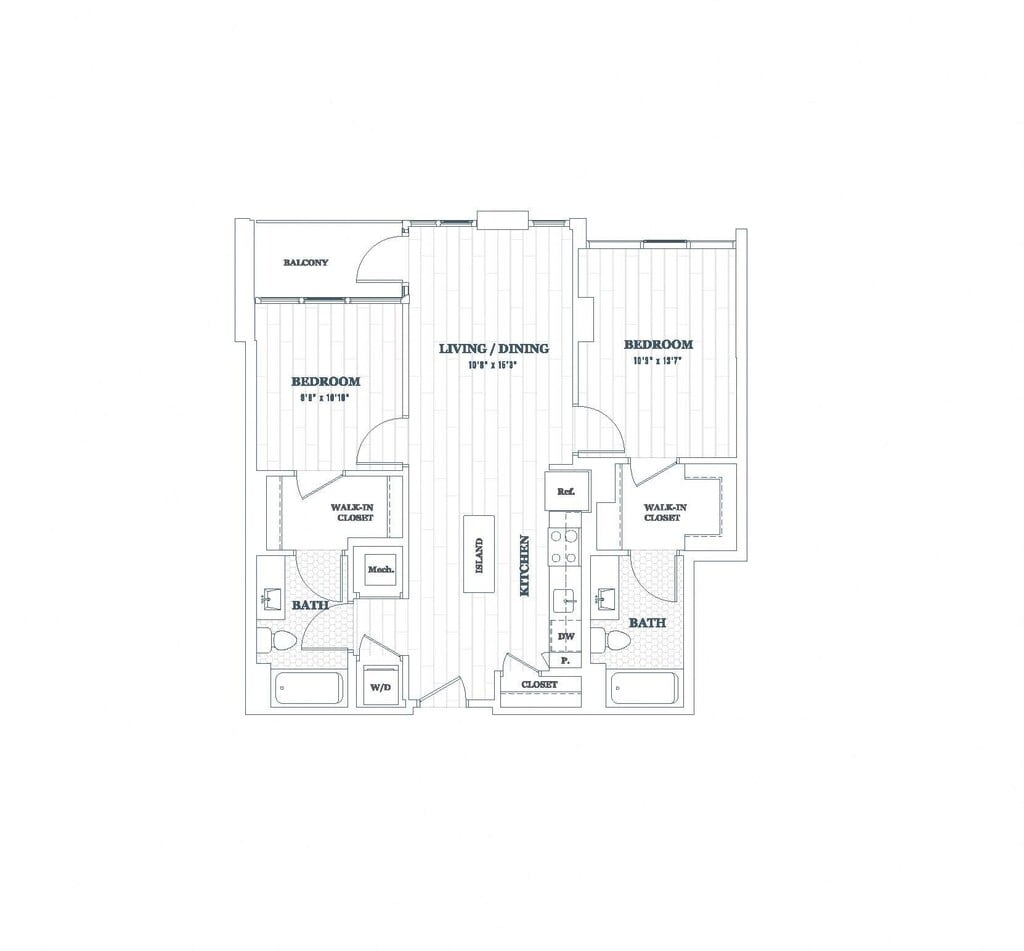 Modelo de apartamento: 1 Bedroom - 1 Bath | a081 Dormitorio, 1 Baño, 661 sq ftDisponible Ahora![]()