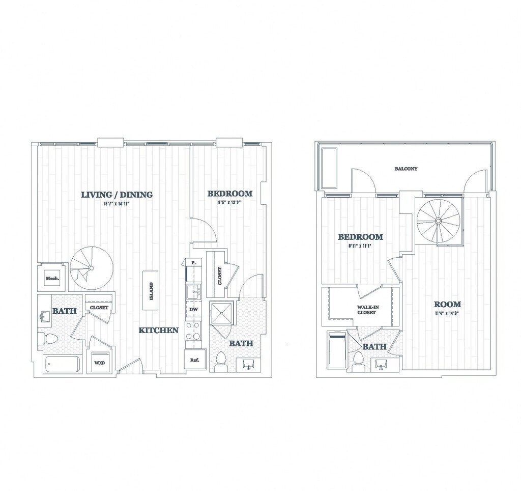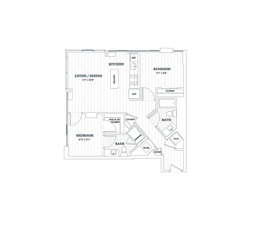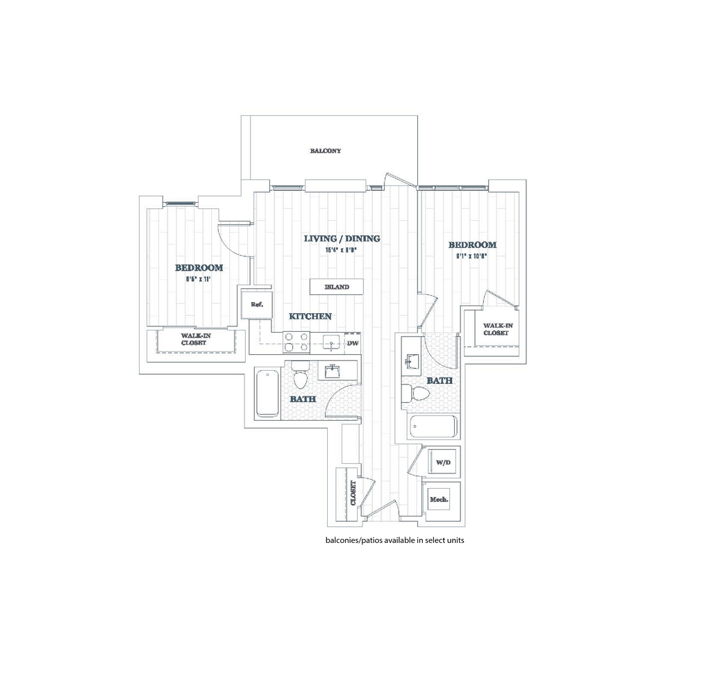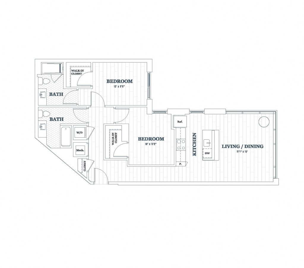Modelo de apartamento: 1 Bedroom - 1 Bath | a081 Dormitorio, 1 Baño, 661 sq ftDisponible Ahora![]()