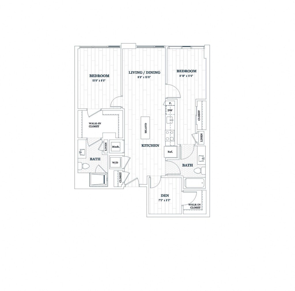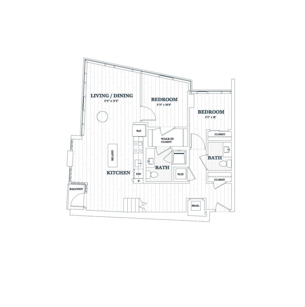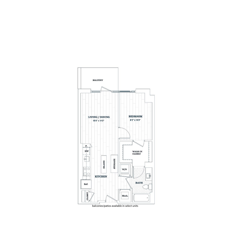 Modelo de apartamento: 1 Bedroom - 1 Bath | a071 Dormitorio, 1 Baño, 661 sq ftDisponible Ahora![]()